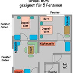 1 Doppel-Boxspringbett + 1 Einzelschlafcouch mit TV