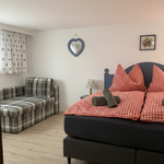 1 Schlafzimmer mit Doppelboxspringbett, Einzelcouch & TV